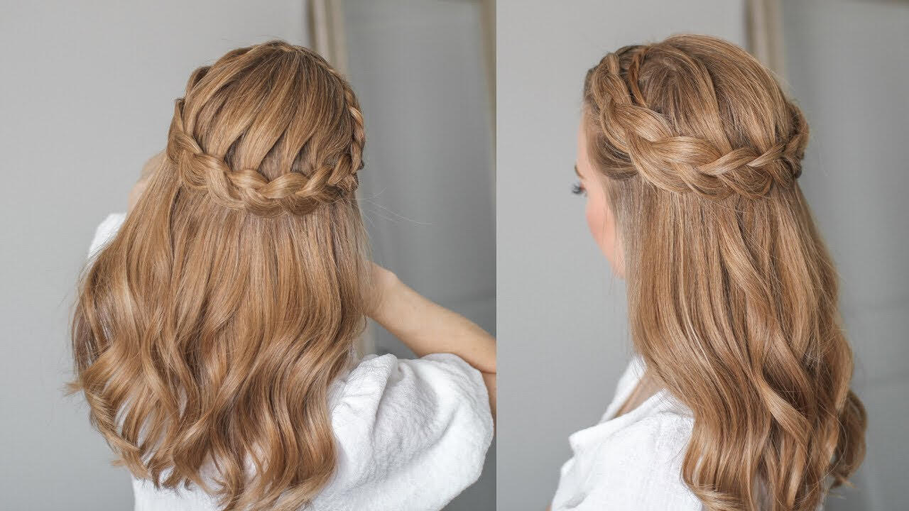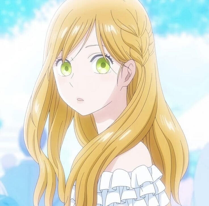 quina's hair is golden honey brown. Her hair is typically in a half-braid hairstyle, with loosely curled hair frame strands. Her hair in the back is straight/wavy. and goes to her shoulder-blades.