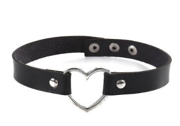 she is always seen wearing her black heart choker as a symbol of her goddess.